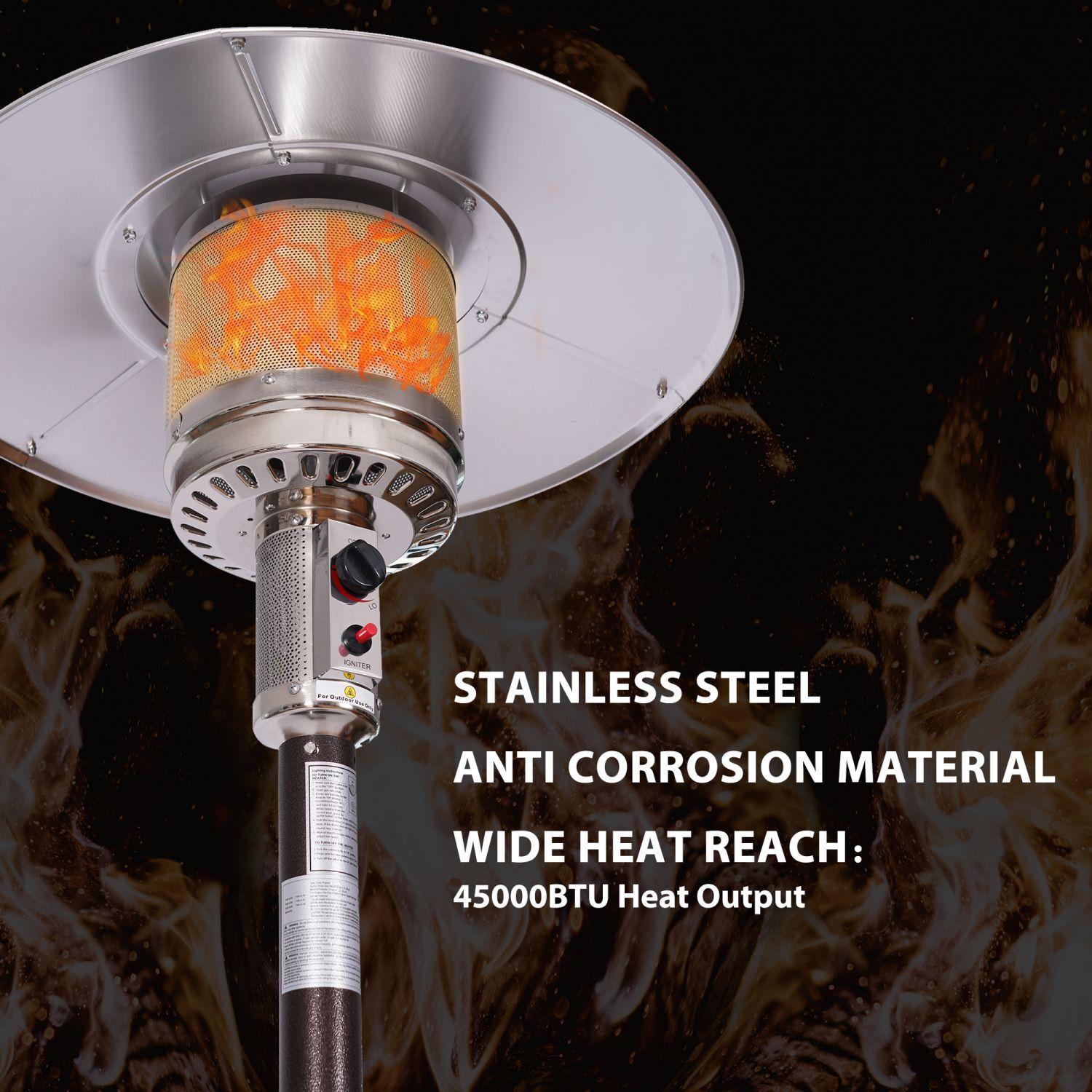 This 88-inch gas patio heater with 33-inch reflector has 46,000 BTU heat output in a circle. With this heater, you can still enjoy the warm courtyard life when winter comes.