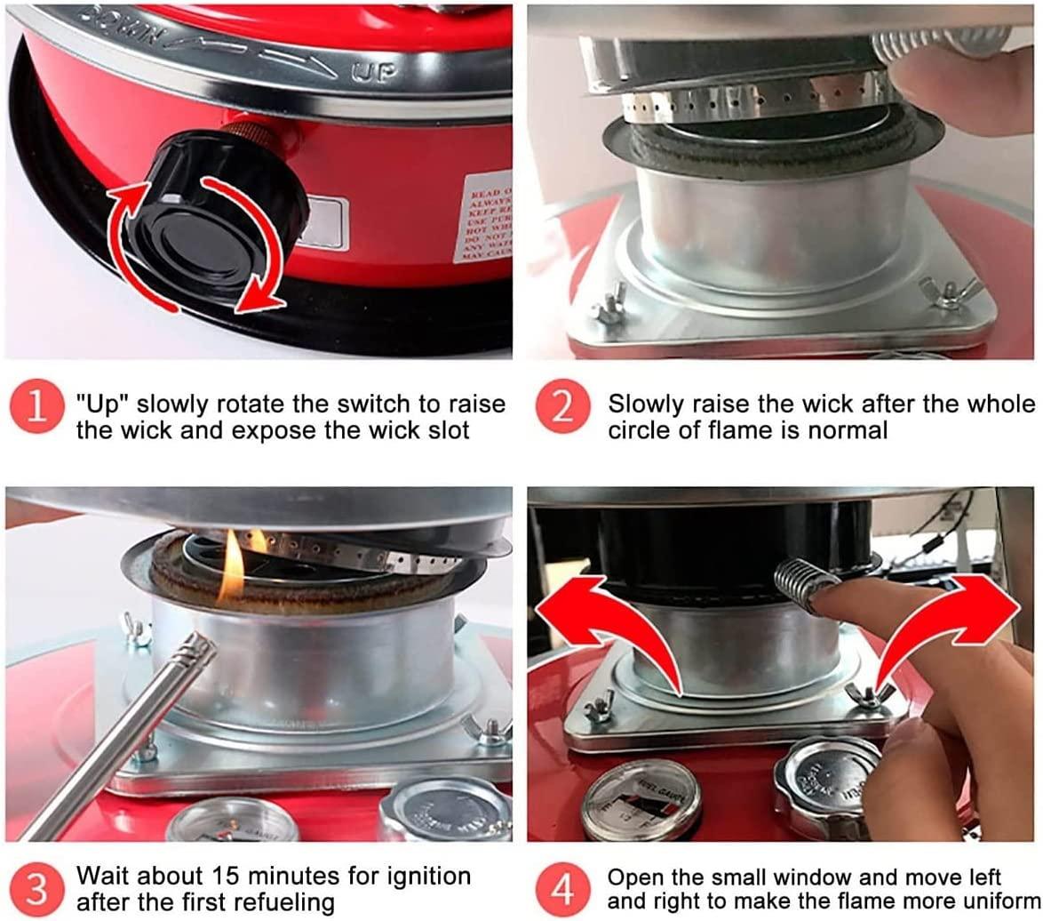 • ♨ Multi-purpose: Easy to Use, Portable handle design. The fuel gauge can check the fuel in real time, and the sealed fuel filler cap is safer. Kerosene Stove Heater can heat, boil, cook, and barbecue at the same time. It is a good partner for camping, picnics, traveling, and parties.