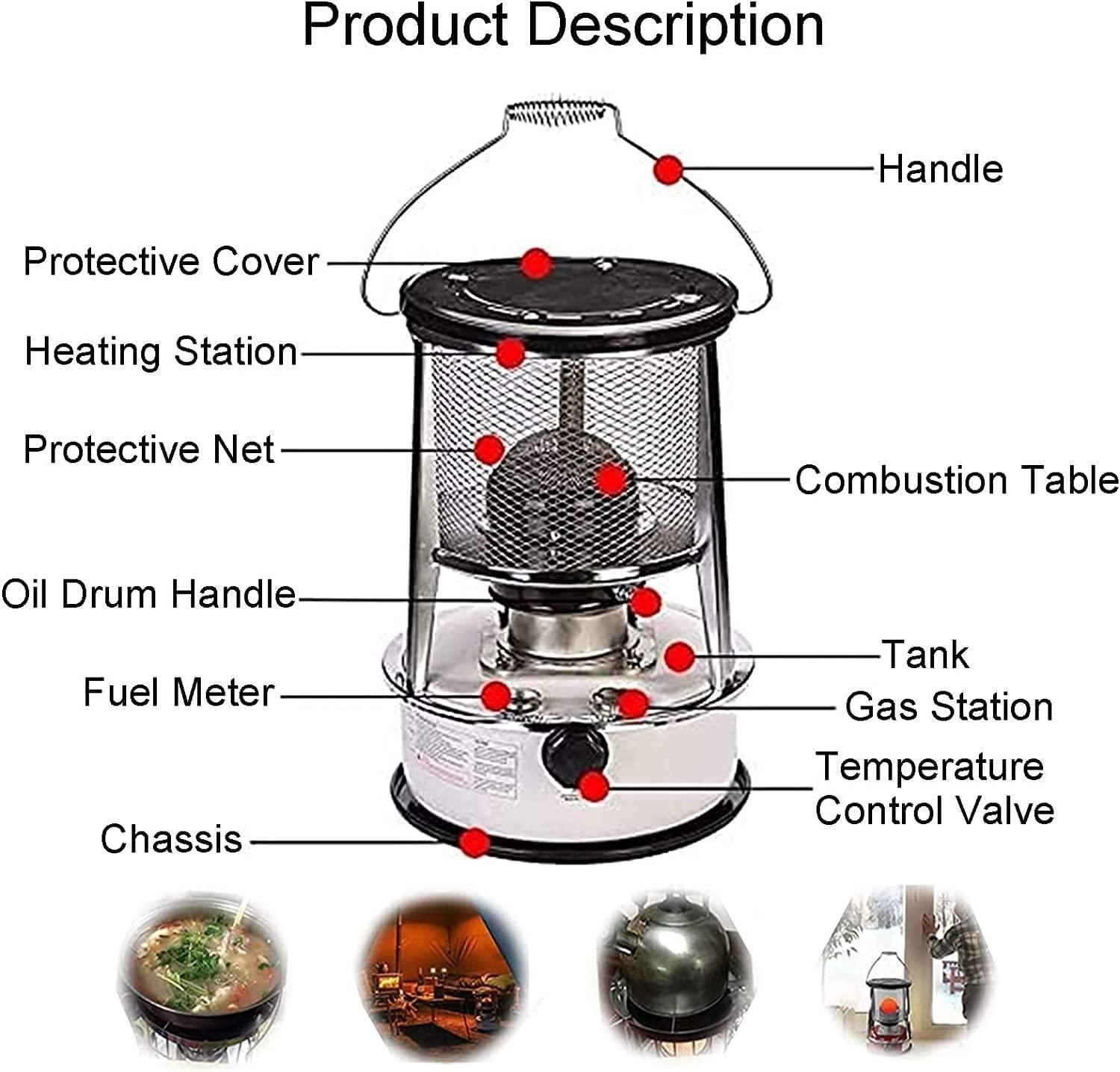 - This kerosene heater is not only suitable for indoor use, but also very practical for outdoor camping, mountaineering, fishing, boiling water, cooking, barbecue, etc.