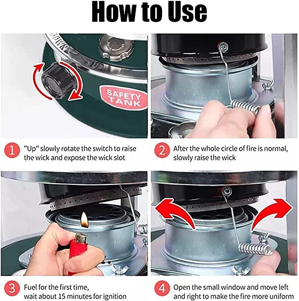 • User-friendly design: The removable top cover can be opened directly when boiling water or cooking. The kerosene stove stabilizer can keep the kerosene stove stable and upright, which is convenient for you to boil water and cook. Portable paraffin heater has the function of log fuel, no gas, no oil, no smoke damage.