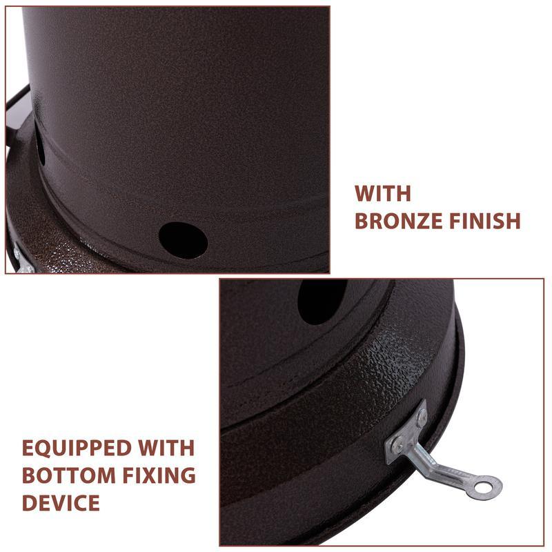 1.Quality Material Design:The heater is made of high quality stainless steel and bronze, and with a double-layer protective mesh, it's designed to Provide and maintain optimal durability and perfectly complement your patio furniture and outdoor decor.