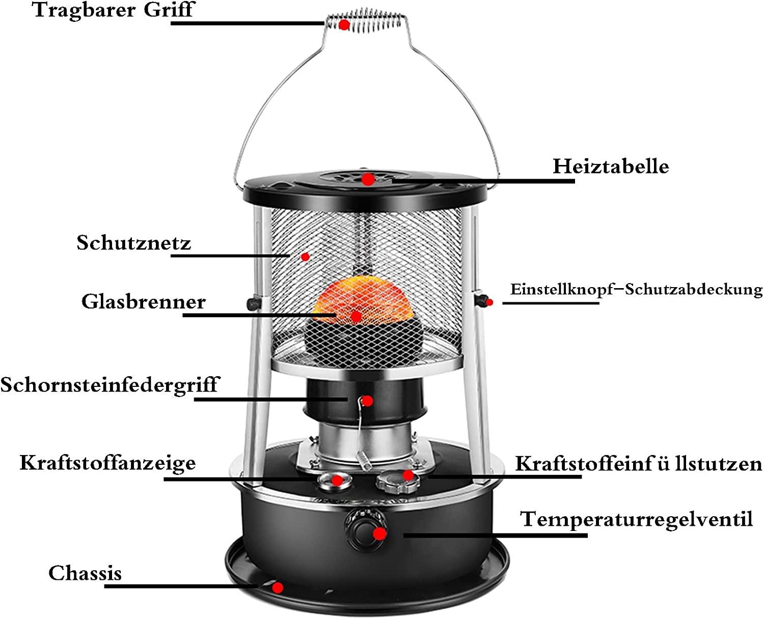 • Safety: Includes kerosene schedule, so you can check fuel usage at any time. With the tilt angle automatic shut-off (anti-tilt), automatic extinguishing and hypoxia protection for safe and secure use.