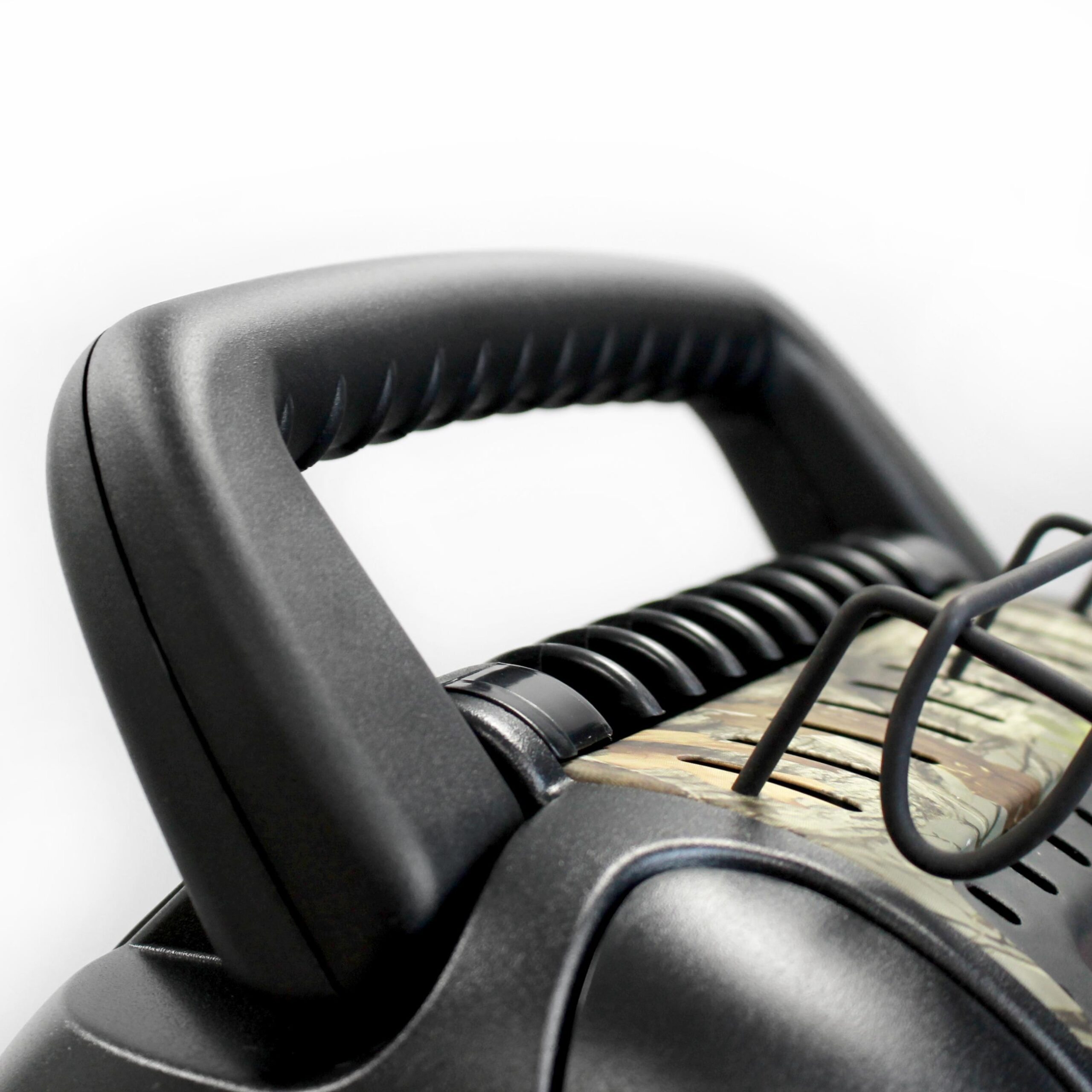 North America's most popular portable propane heater! This patented radiant 6,000-12,000 BTU liquid propane heater connects directly to a 1 lb cylinder and is the perfect solution for heating enclosed spaces like pop-up blinds, tents or cabins up to 300 sq ft. camouflage face plating and two spare storage compartments for an extra one pound propane tank, gloves, or other emergency tools make this the perfect outdoor adventure heater. A swivel regulator gives you the ability to adapt usage from disposable cylinders to a remote gas supply with the purchase of a single hose and filter. To light the unit, push down the pilot knob and depress the silent electronic pulse ignition button. The unit will light with much less noise than a traditional Piezo spark igniter. With the oxygen depletion sensor (ODS) and accidental tip over safety shut-off, you can be sure that you will enjoy years of comfortable indoor safe heat.