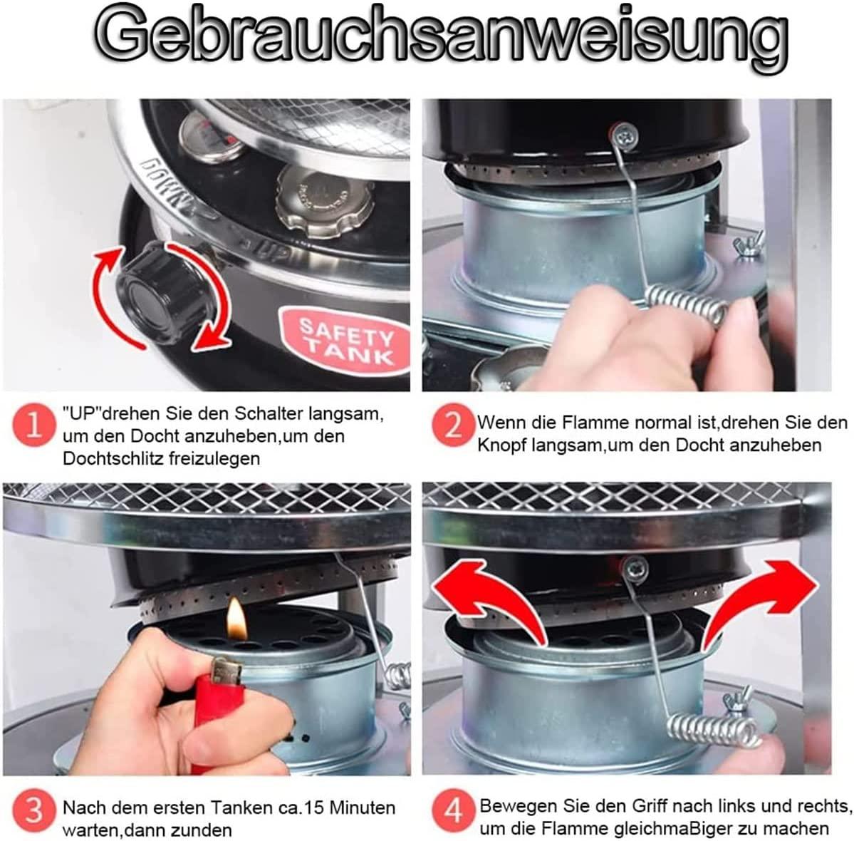 • ☞【More efficient kerosene heating】4.5L combustion chimney of the indoor portable kerosene stove without electricity is made of special metal, which makes the kerosene burn completely, and the heating is faster and more efficient. The oil heater has 4 wicks and 2 gloves.