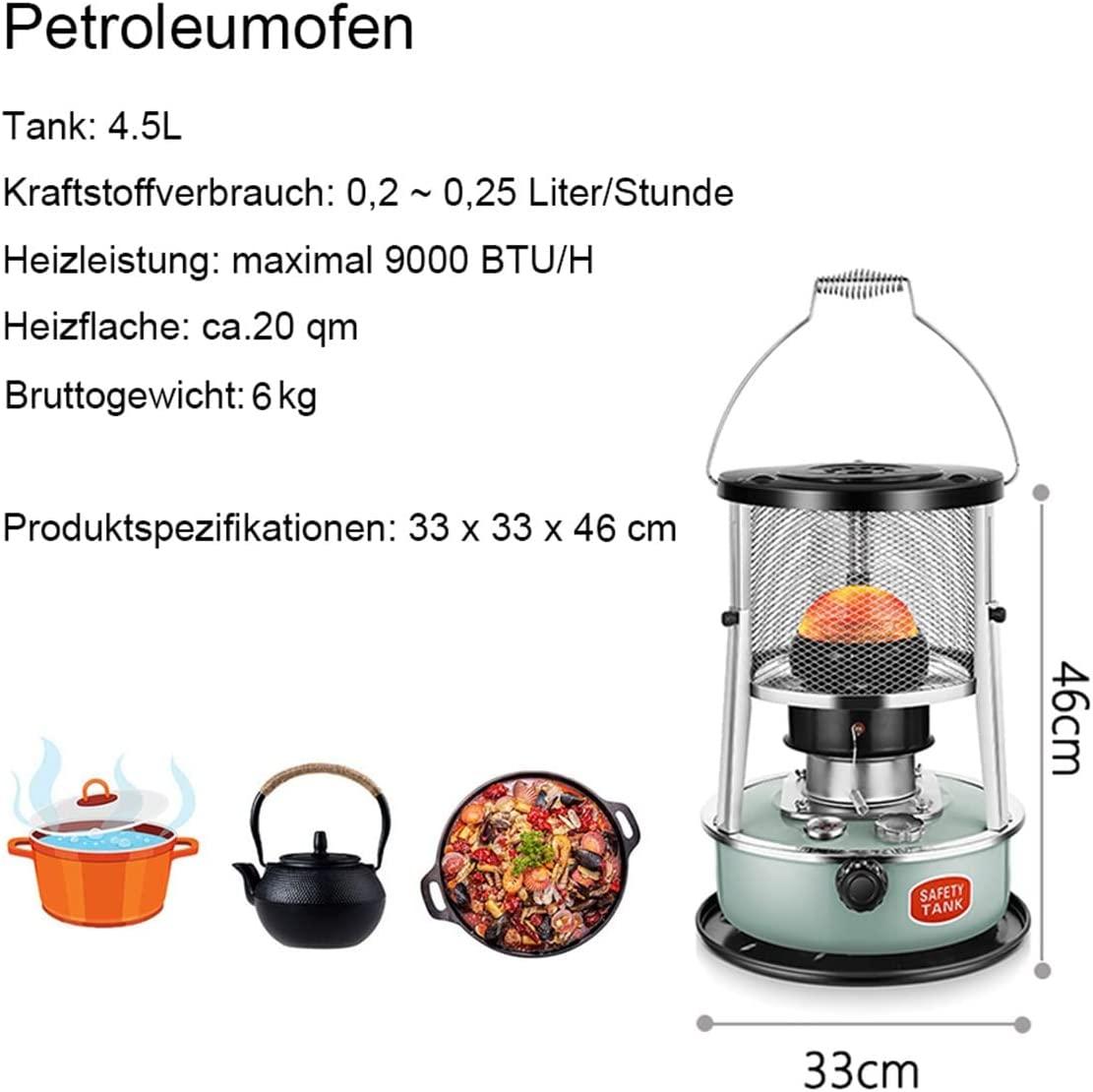 Outdoor Kerosene Stove Heater 4.5L Efficient Portable Convection Kerosene Heater Smoke- and Fuel-efficient Oil Burner for Heating Cooking Boiling Water, Green/Black