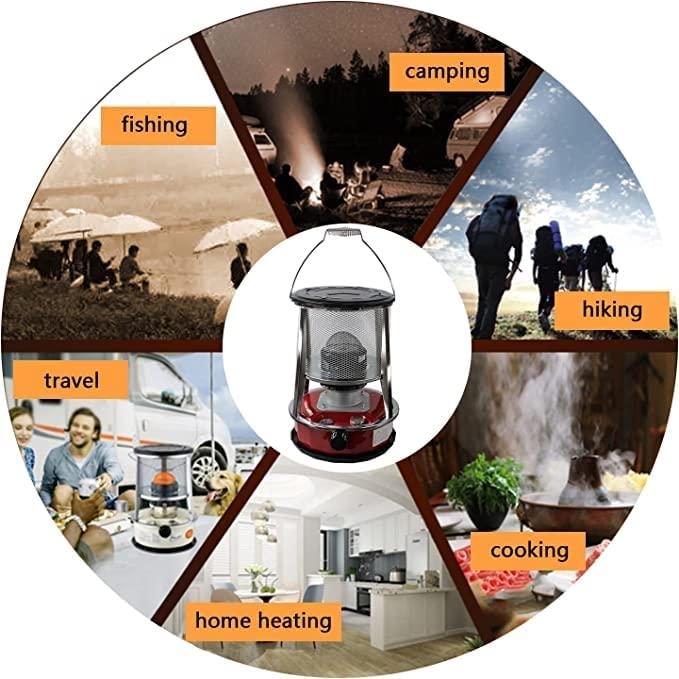 • ❄MULTI-PURPOSE: The fuel gauge can check the fuel condition in real time, and the sealed fuel filler cap is safer. The combustion temperature of the kerosene stove can be adjusted ly, the portable handle is designed for easy ignition, equipped with a safety net, and the top heating table is designed to heat, boil and cook at the same time.