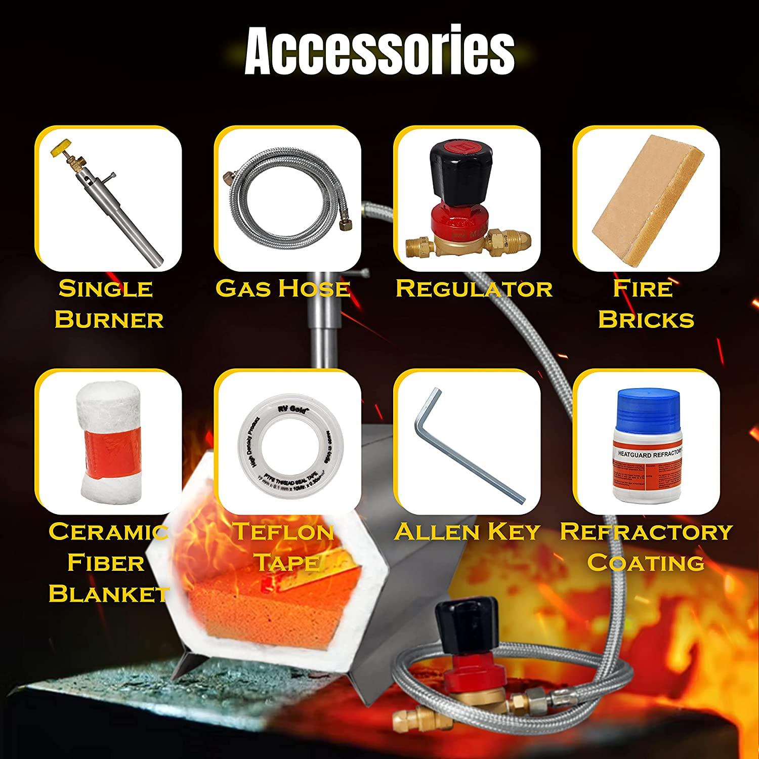 - Perfect Design: A unique hexagonal shape forge body provides a larger working space even after insulation and vertical firing mechanism helps you to get maximum exposure of your metal to the flame to uniformly heat the metal.